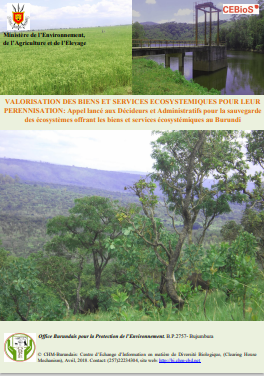 En 2013, le Burundi a adopté sa nouvelle  Stratégie Nationale et Plan d’Action sur la Biodiversité (2013-2020) autour d’une vision suivante: « D’ici à 2030 la diversité biologique est restaurée, conservée et utilisée rationnellement par tous les acteurs, en assurant le maintien des services