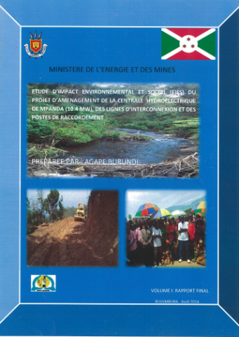 Cette étude élaborée par AGAPE Burundi concerne la production  d'une centrale hydroélectrique d'une puissance de 10,4 MW, des lignes d'interconnexion et des postes de raccordement.